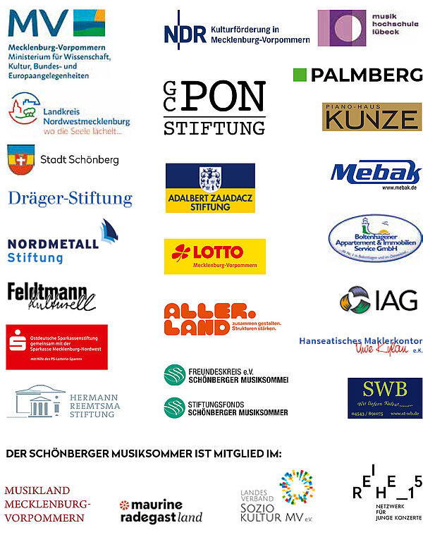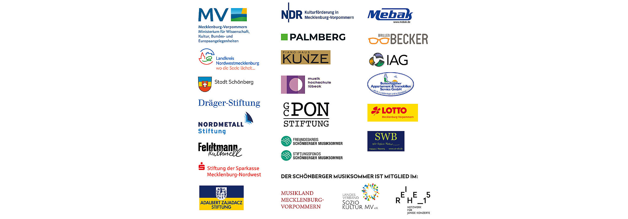 Der Schönberger Musik und Kunst e.V. als Veranstalter des Schönberger Musiksommers bedankt sich herzlich bei allen hier genannten Personen, Institutionen und Unternehmen für die freundliche Unterstützung und bei allen im Hintergrund Tätigen für die umfangreiche Hilfe. Nicht zuletzt gilt unser Dank allen in dieser Saison auftretenden Künstler*innen sowie Ihnen, unseren Gästen, für Ihr Kommen.
